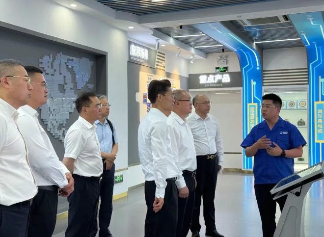 在企業(yè)展廳,趙東一行詳細(xì)了解漢纜股份在發(fā)展歷程、科技創(chuàng)新、產(chǎn)品研發(fā)等方面取得的成果,并對公司在線監(jiān)測系統(tǒng)與電纜材料板塊進(jìn)行了重點(diǎn)考察,就相關(guān)技術(shù)應(yīng)用與產(chǎn)業(yè)發(fā)展進(jìn)行了深入交流。